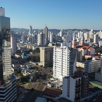Chapecó is a city in the state of Santa Catarina in southern Brazil, spreading across gentle hills and flat valleys. The cityscape mixes low residential houses with modern buildings while wide streets connect different neighborhoods.
