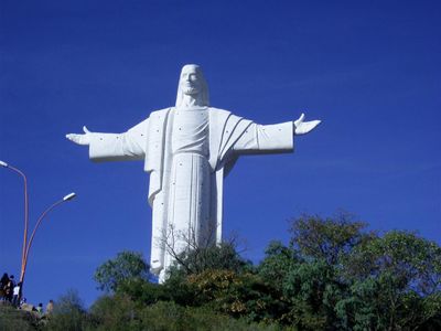 The Cristo de la Concordia statue on San Pedro Hill reaches a height of roughly 34 meters (112 feet) and offers a platform accessible by stairs. From the top, visitors see the entire valley and surrounding mountains while viewing the details of the figure up close.