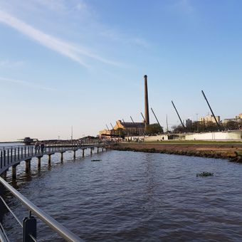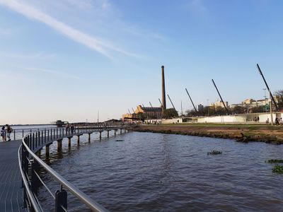 The Orla do Guaíba extends for 1.5 kilometers along the Guaíba River, offering walking paths, sports areas, and observation points for visitors.