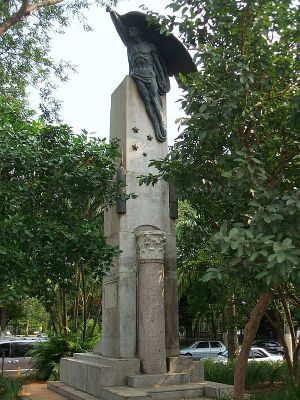The granite and bronze sculpture stands as a memorial to pioneer aviators who accomplished early transatlantic flights between Europe and South America.
