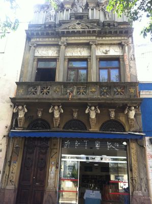 The building features intricate marble sculptures, bronze decorations, and esoteric symbols integrated into its eclectic architectural design from 1925.