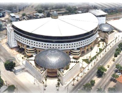The facility includes radio and television broadcasting studios, a helipad, exhibition spaces, libraries, classrooms, and a dedicated building for bishops and pastors.