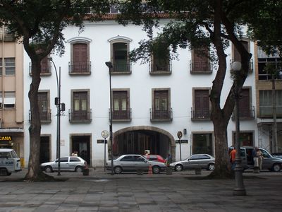The building represents Portuguese colonial architecture and includes house number 13, where singer Carmen Miranda lived while her mother operated a pension.