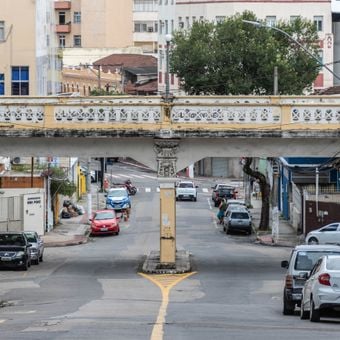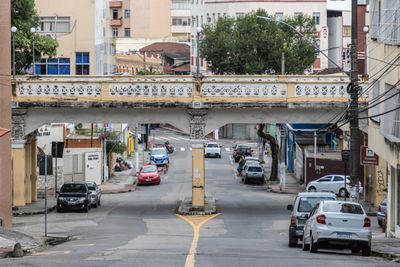 The Caramuru Viaduct stretches 34 meters across the urban landscape, connecting Rua Dom Fernando and Rua Francisco Araújo above Rua Caramuru in Vitoria.