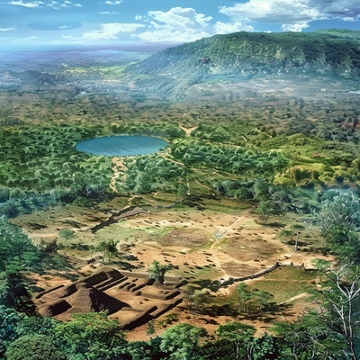 The largest village contained 5,000 inhabitants and featured wooden palisades, while Lake Lamakuka provided fish as the primary protein source.