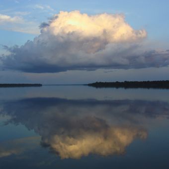 Near Manaus, the dark water of the Rio Negro flows beside the light brown water of the Solimões for several kilometers without the two rivers mixing. The different temperature and flow speed of the two currents prevent them from merging immediately.