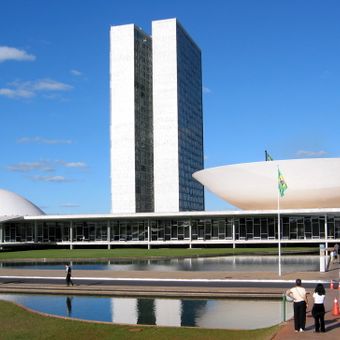 The name National Congress Palace refers to the two chambers of the Brazilian parliament, each meeting under one of the two domes. Brazilian artists created murals and sculptures for the interiors that visitors can view while walking through the corridors and halls.