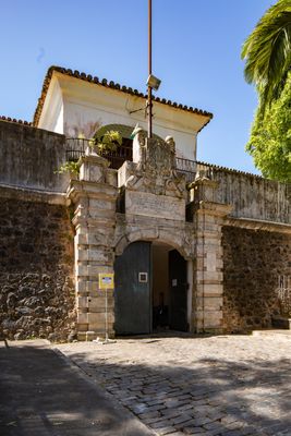 The fortress entrance includes a tribunal-style gateway, added during 19th century modifications, distinguishing it from other colonial fortifications.