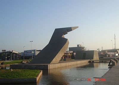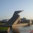 The Memorial da Cabanagem features a concrete ramp structure measuring 15 meters in height and 20 meters in length, positioned at the Entroncamento road complex.