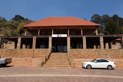 36 Houghton Drive is a two-story Arts and Crafts building in Johannesburg's Houghton Estate with traditional architectural details from the early 1900s. The structure features handcrafted elements and carefully proportioned windows typical of its era.