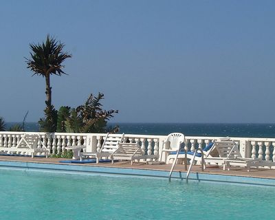 The Oyster Box stands along the Indian Ocean coastline, featuring two outdoor swimming pools and direct access to the beach through private grounds.