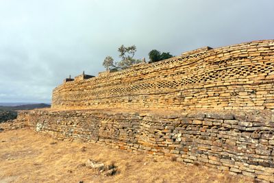 The stone walls display six different decorative patterns, including chevrons, herringbone, cord, checkers, and colored stone inserts that reflect social status meanings.