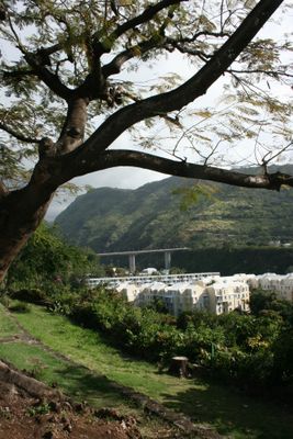 The structure provides essential access to the coastal road and connects to Boulevard Jean-Jaurès, leading to the airport after crossing Rivière des Pluies.