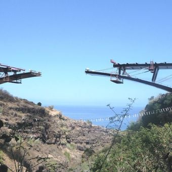The bridge connects sections of National Route 1, reducing travel time through the mountainous terrain while providing designated viewing areas for visitors.