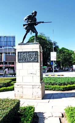 The Askari Monument is a bronze military memorial on Samora Avenue in Dar es Salaam. An African soldier holding a rifle with bayonet stands at the center of a roundabout in the downtown business district.