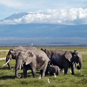 Amboseli is a national park in Kajiado County, Kenya, covering around 390 square kilometers of grassland, wetlands and open plains. Mount Kilimanjaro forms the backdrop to the south, its summit rising above the landscape.