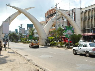Located on an island connected to the mainland by bridges and a causeway, Mombasa extends along the shores of the Indian Ocean.