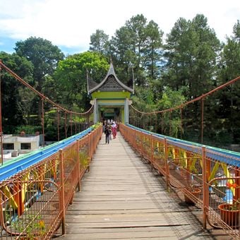 The Limpapeh Bridge stretches 90 meters across Ahmad Yani Street, connecting Fort de Kock fortification with the Bukittinggi zoo through a covered walkway.