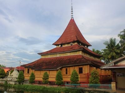 The Tuo Koto Nan Ampek Mosque spans 1,550 square meters and features three-tiered roofs designed for effective rainwater drainage in tropical conditions.