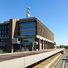 The Public Transport Centre features brown brick and concrete construction, with strong geometric forms defining its architectural presence in the urban landscape.