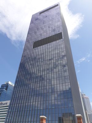 The David Malcolm Justice Centre is an office tower standing 149 meters tall with a glazed facade featuring vertical fins, positioned next to the State Buildings complex in Cathedral Square. The building houses civil courtrooms for the Supreme Court of Western Australia and offices for the Department of Treasury and Justice.