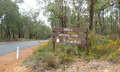 Beelu National Park encompasses 3000 hectares of jarrah and marri woodland, where western grey kangaroos and Carnaby's cockatoos inhabit the natural surroundings.