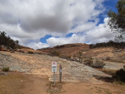 Two marked trails, the 1220-meter Gnamma Trail and the 1670-meter Kalari Trail, allow visitors to explore the geological features and native vegetation.