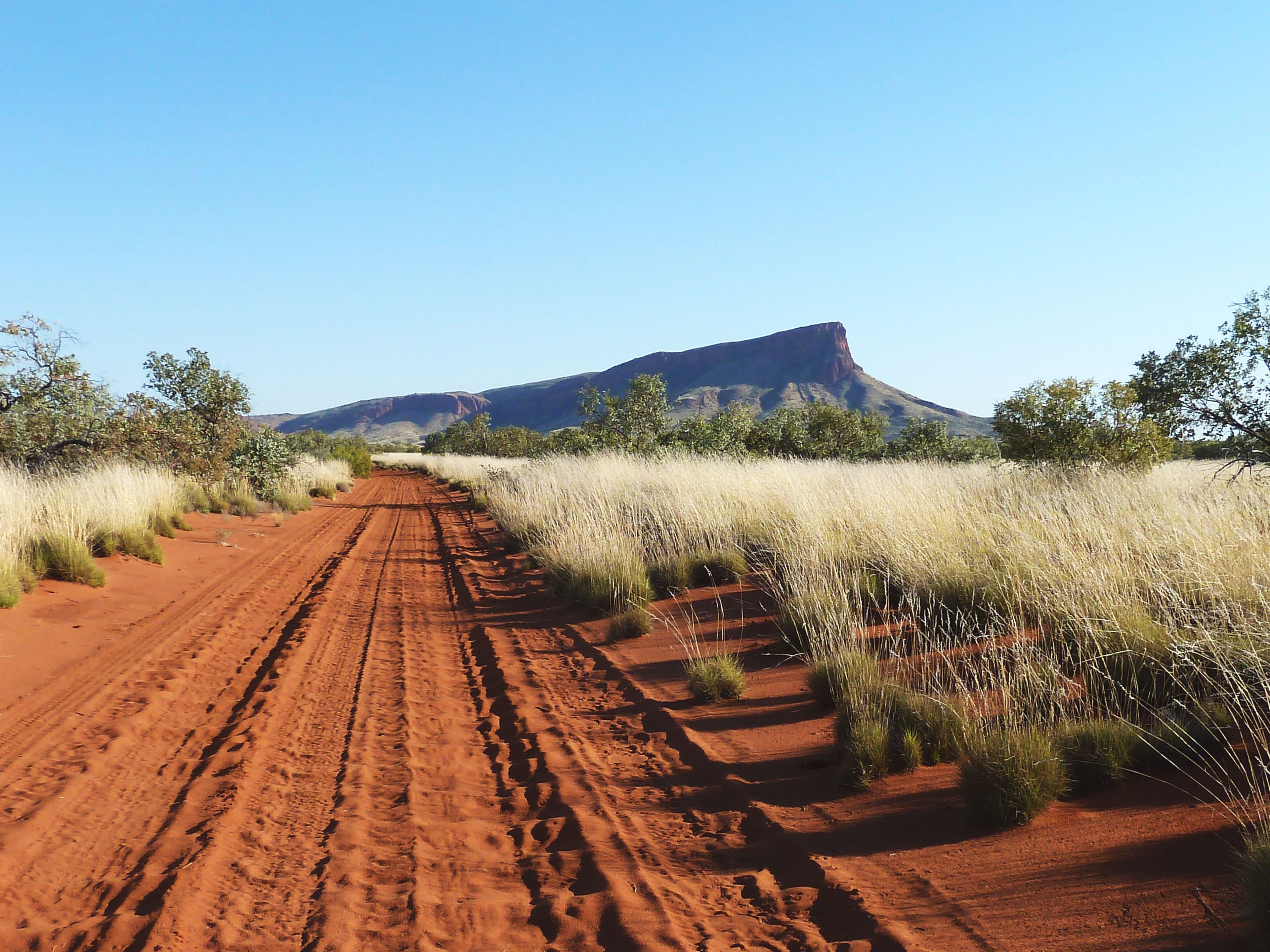 The Sandy Blight Junction Road, constructed in 1960, provides access to Mount Leisler through the Gibson Desert territory from Docker River to Kintore.