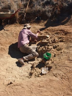 The fossil deposits are packed so densely that extracting individual specimens requires careful techniques to prevent damage to surrounding bones.