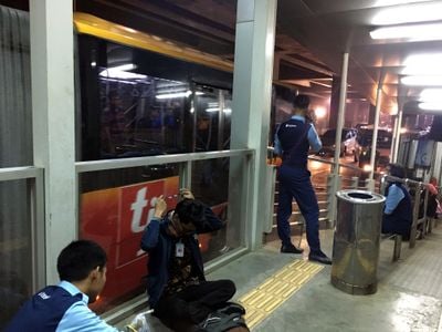 The location shows how Jakarta modernized its traditional bus infrastructure by integrating old terminals into the city's mass transit system stations. This integration created a space where older and newer transportation methods coexist side by side.