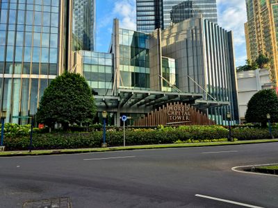 World Capital Tower rises 270 meters with 51 floors in the Mega Kuningan business district, featuring extensive glass surfaces and contemporary architectural lines that define the skyline. The complex houses office space along with retail areas spanning multiple levels that include restaurants and shops.