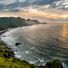 The red bridge structure above the beach serves as a viewing platform, offering perspectives of both sunrise and sunset over the Indian Ocean.
