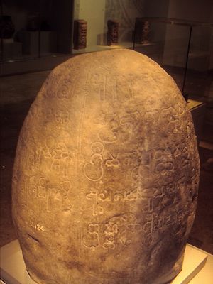 The stone dates from the mid-5th century and documents projects in which two waterways were altered. A ruler named Purnawarman had this work carried out during his reign and recorded on the stone.