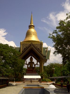 The temple houses a 20-meter-tall Guan Yin statue and the largest gold-covered Phra Phrom statue in Indonesia, recognized by the Museum of Indonesian Records.