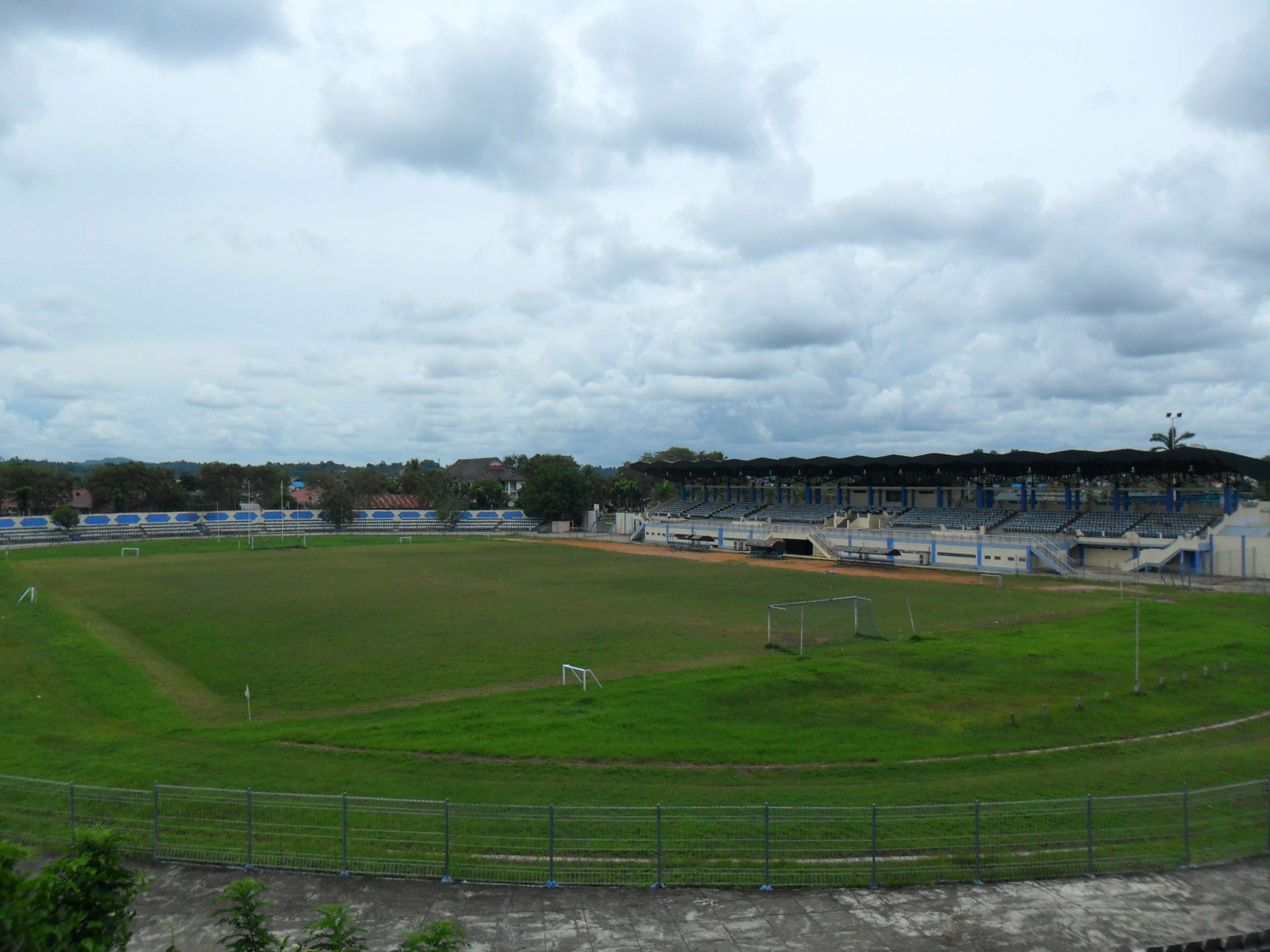 Rondong Demang Stadium features a natural grass playing surface and standard seating arrangements that accommodate up to 20,000 spectators during sporting events.