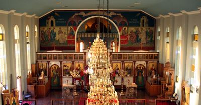 The Saint George Thebarton church stands as the largest Greek Orthodox religious structure in Adelaide, featuring traditional ecclesiastical architecture and detailed interior designs.
