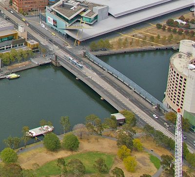 The bridge serves as a meeting point during public events and provides photographers with views of Melbourne's central business district and river landscape.
