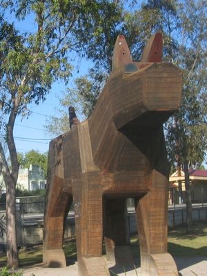 The sculpture represents the Australian tradition of creating large-scale public artworks that serve as regional landmarks and community gathering points.