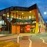 The building features an orange and grey exterior design with geometric patterns inspired by the Murray River rail bridge architecture.