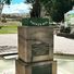 Dog on the Tuckerbox shows a bronze hound resting on a wooden food storage container traditionally used for provisions. The sculpture stands on a stone base in a small park with trees and lawn areas along the main road between Sydney and Melbourne.