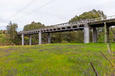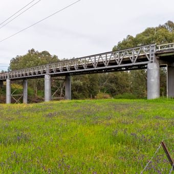 The bridge features cast iron piers manufactured at Fitzroy Iron Works in Mittagong, representing early Australian iron production achievements.