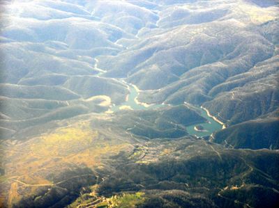 Tumut Pondage, Arch dam in Snowy Mountains, Australia.