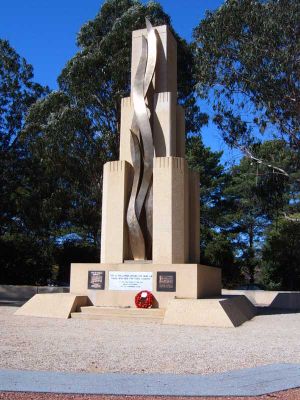 Bronze eternal flame sculptures by Melbourne artist Marc Clark adorn the memorial, representing the enduring spirit of the Australian defenders.