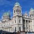 The Cathedral of the Blessed Sacrament is a Catholic church in Christchurch featuring twin bell towers, copper-domed roofs, and Ionic columns in Renaissance Revival style. The façade displays classical architectural elements that make the building recognizable as an important religious structure.