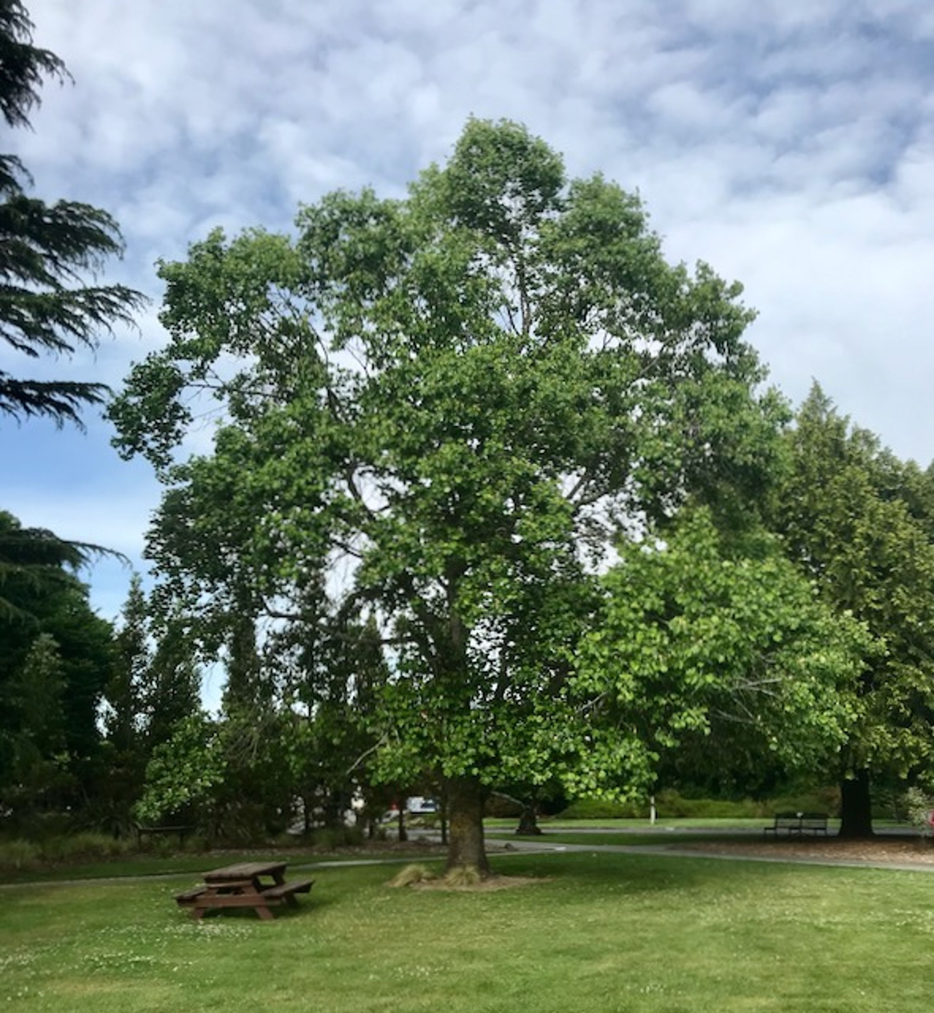 Lincoln University tulip tree, Tulip tree (Liriodendron tulipifera), planted in 1961 by Entomology lecturer Lewis Morrison on his retirement, Lincoln University, New Zealand