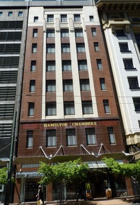 Hamilton Chambers, facade of a historic office building in Wellington, New Zealand
