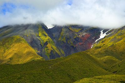 The park features 300 kilometers of hiking trails, ranging from the 15-minute Kamahi Track to the three-day Pouakai Circuit through varied terrain.