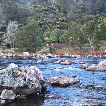 Karangahake Gorge is a narrow rock cleft in the Hauraki District where the Ohinemuri River cuts through the Coromandel and Kaimai mountain ranges. Steep walls tower above the river on both sides, creating a confined passage carved through solid rock over time.