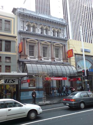 This building represents one of the few remaining nineteenth-century structures on Queen Street and housed Auckland's first McDonald's restaurant until 2020.