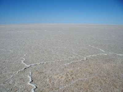 During rare flooding events, which occur approximately every eight years, the salt pan transforms into a water basin that draws numerous bird species.